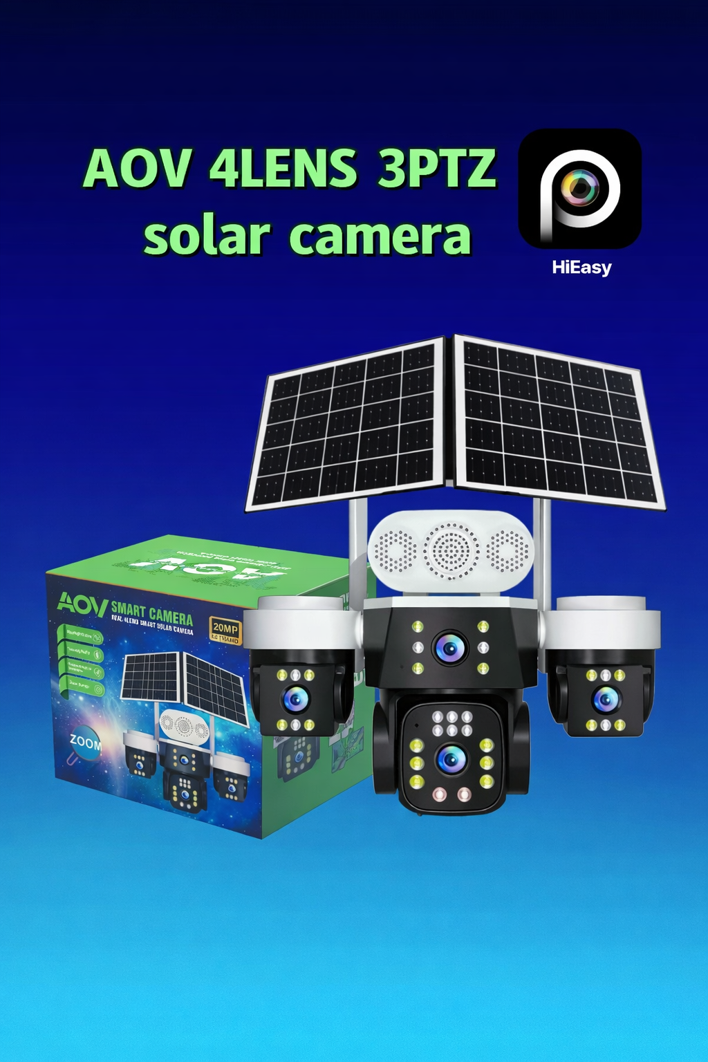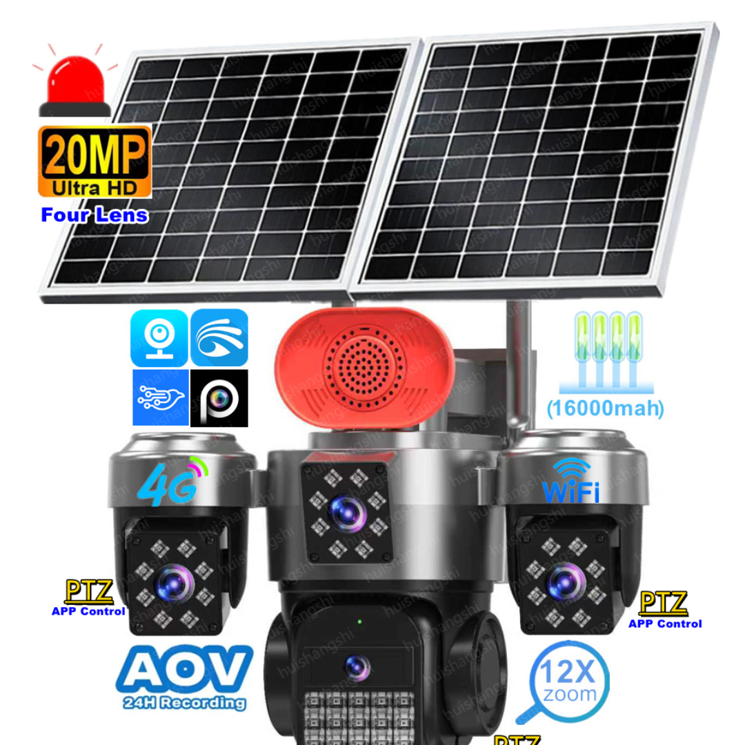 4-Lens,2 Solar Panel 16000mAh Battery capacity, with Alarm Siren